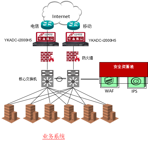 在客户业务的出口双机部署九游ninegame通明湖应用交付控制器,并配置链路检测配置文件,若线路故障实现自动进行主备切换故障转移。